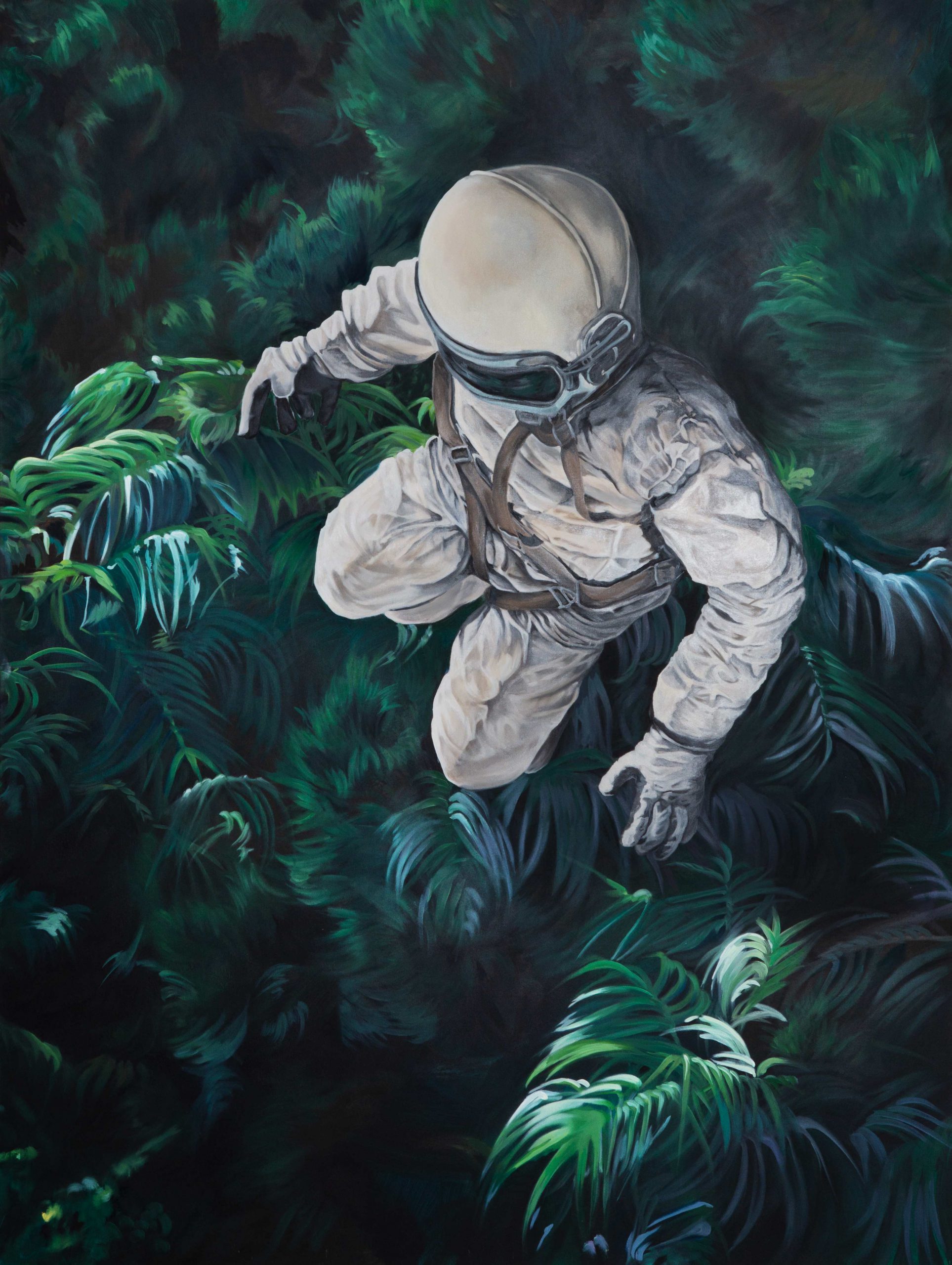 18-193; Astronaut im Dschungel I; 160 x 120 cm; Öl auf Leinwand; 2018