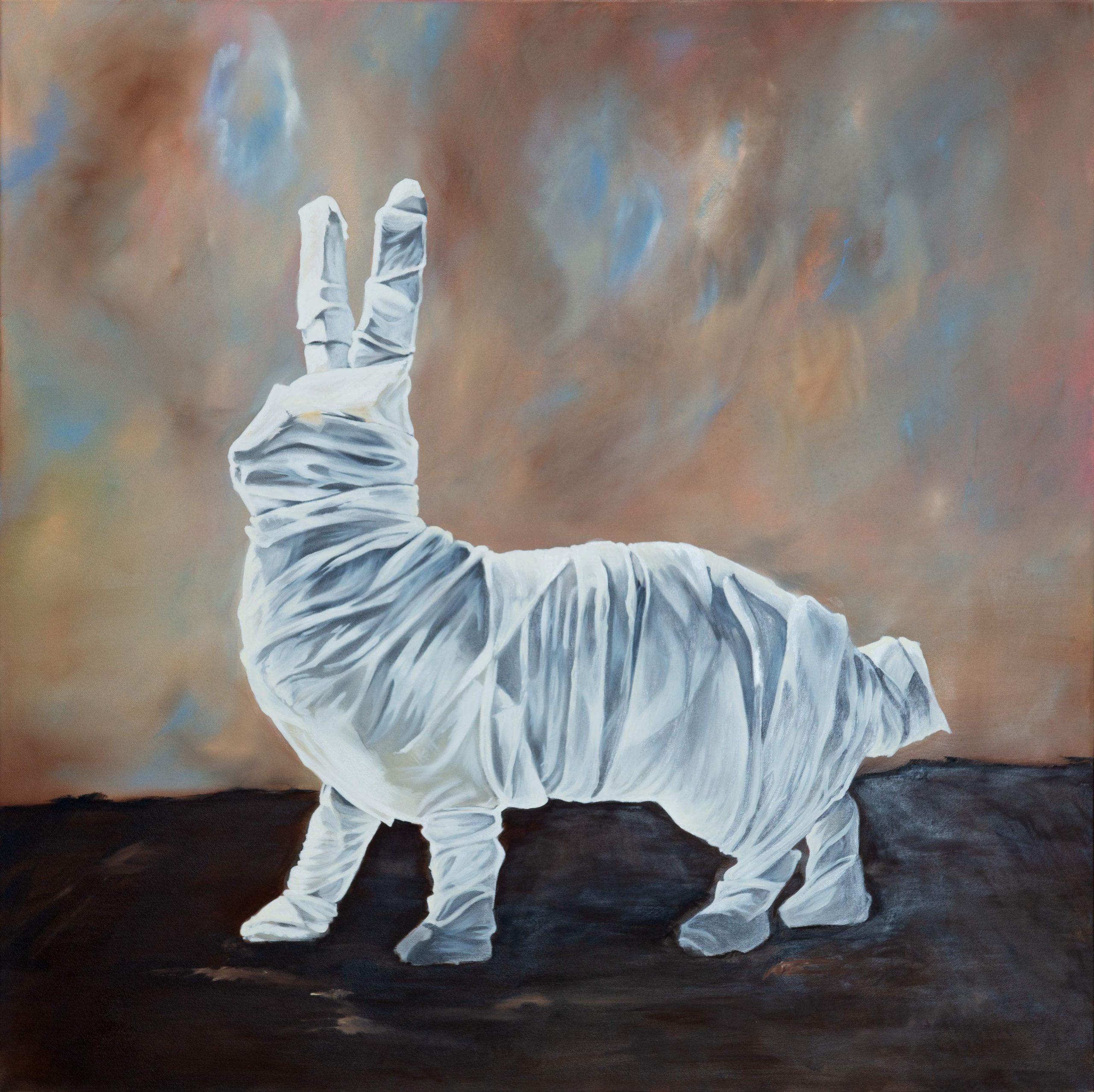 18-203; Hase stehend; 100 x 100 cm; Öl auf Leinwand; 2018